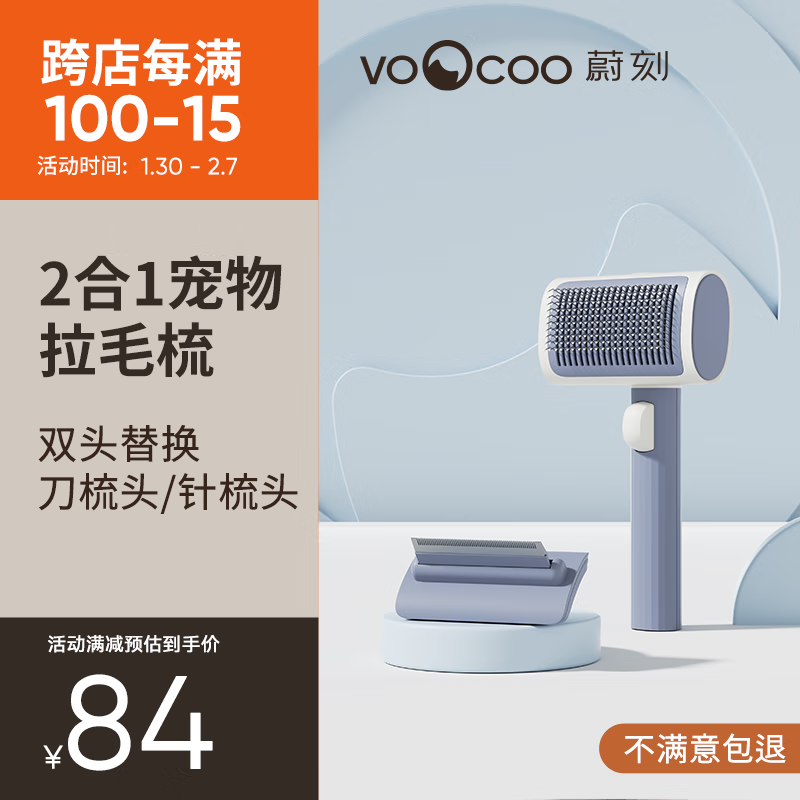 VOOCOO蔚刻宠物梳子猫咪狗狗梳毛专用梳子梳毛撸猫神器去浮毛针梳 雾蓝色 猫狗专用梳