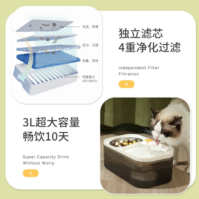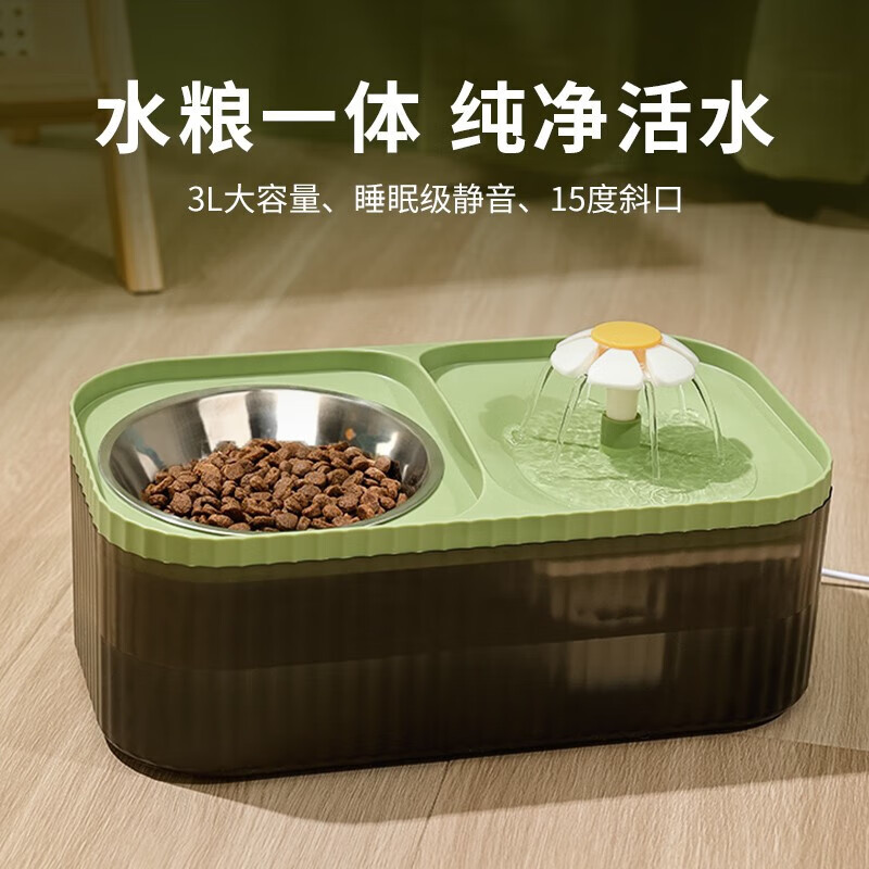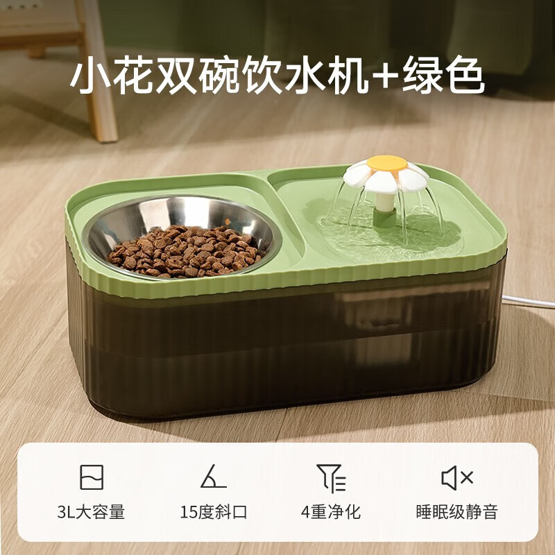 Kimpets猫咪饮水机喂食一体自动循环流动喝水器狗狗饮水器不湿嘴宠物用品 小花双碗自动饮水机 绿色