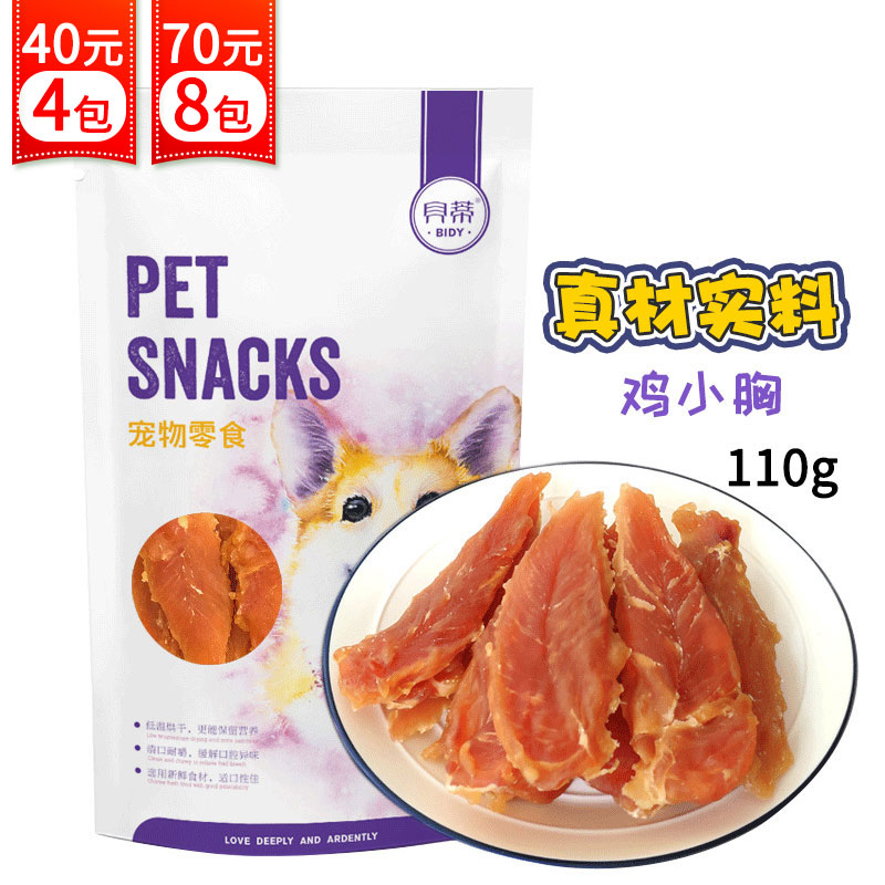 贝蒂狗狗零食宠物磨牙棒洁齿鸡胸肉干训练训犬狗零食泰迪金毛大中小型犬宠物食品 【鸡小胸】110g