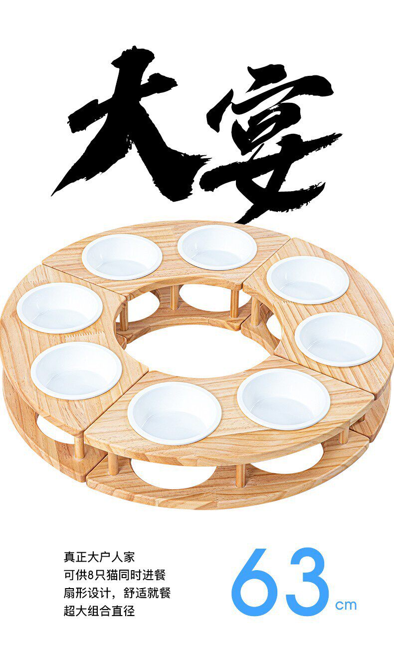 PURR家蜜罐猫 猫碗 狗碗 陶瓷猫食盆实木多猫组合宠物碗顺丰包邮