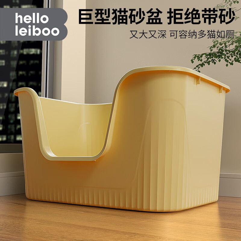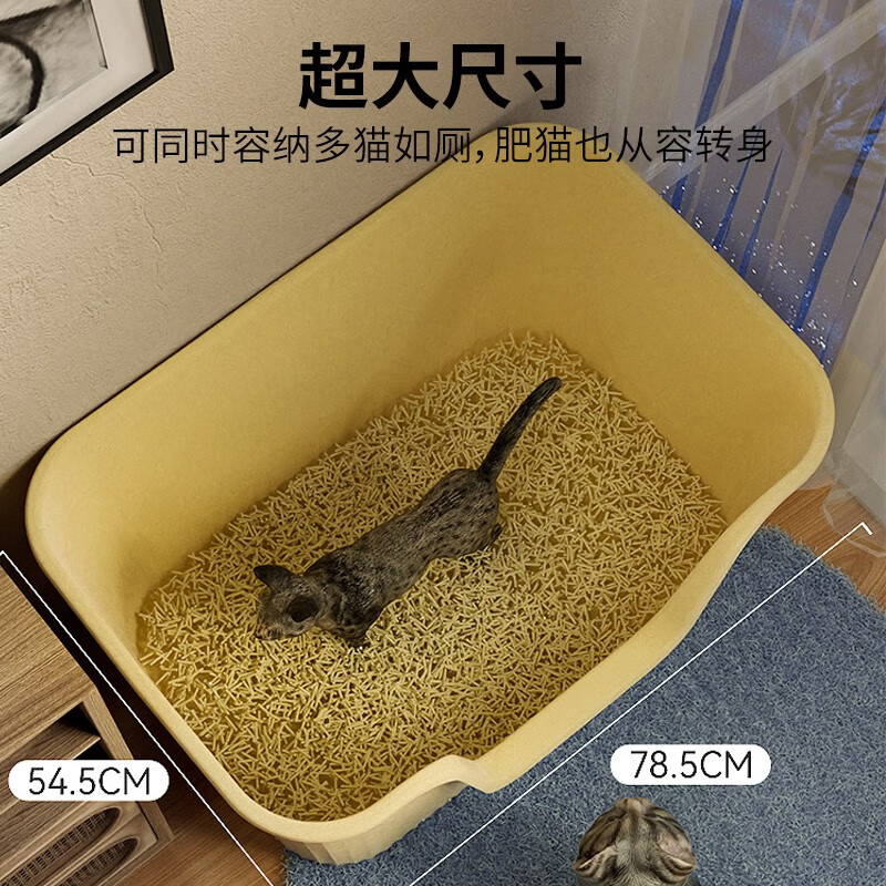 HELLOLEIBOO徕本猫砂盆超大号防外溅一体开放式半封闭猫厕所特大猫沙盆子猫咪 【牛油果绿】超大号猫砂盆