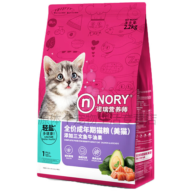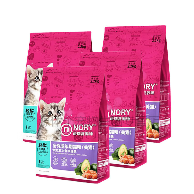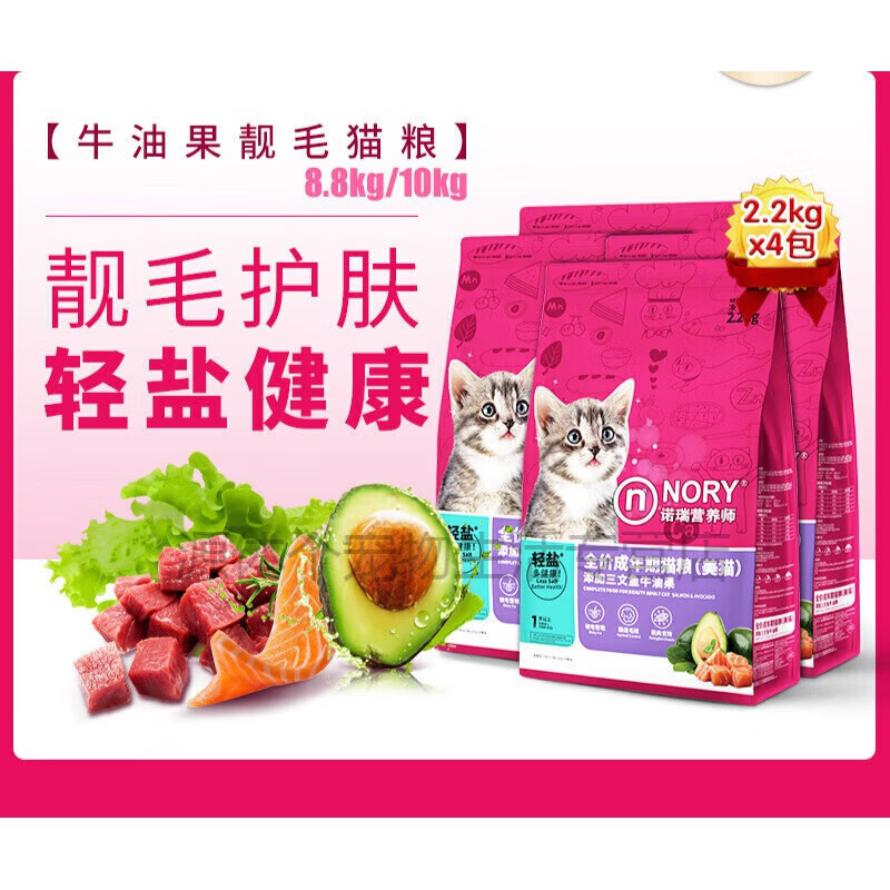 诺瑞(NORY N)牛油果三文鱼成猫粮营养通用猫粮流浪猫粮8.8/10kg 【2.2kg*4包】三文鱼牛油果双拼 8.8kg