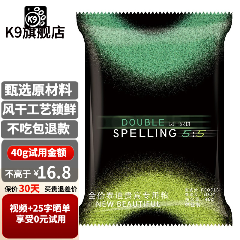K9新秀美风干双拼泰迪贵宾狗粮 宠物成犬幼犬主粮 风干粮 口臭全犬种通用狗粮 泰迪旅行装(40g*1)
