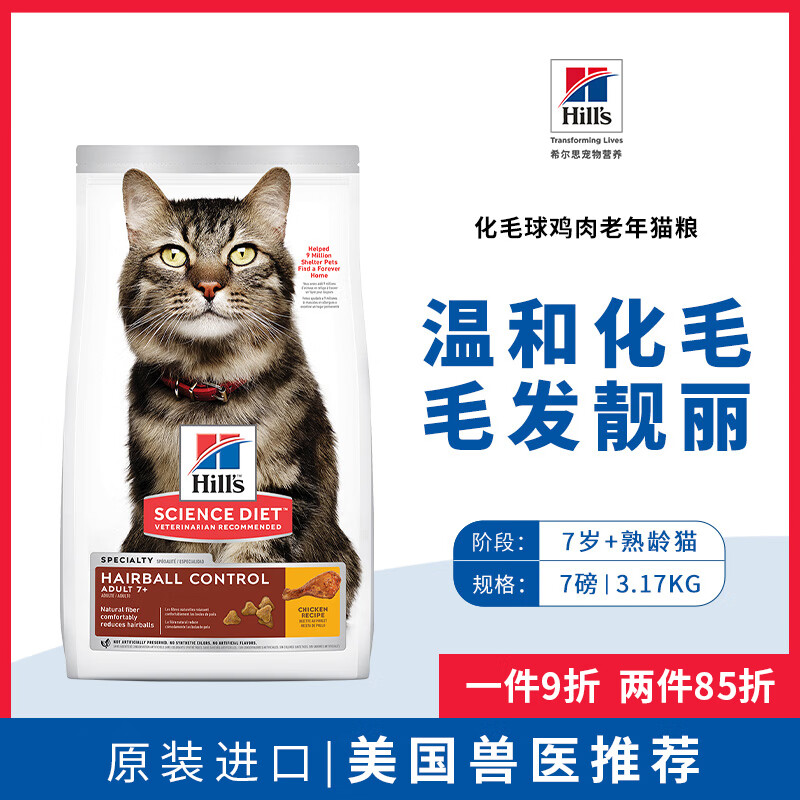 希尔思Hill‘s美国进口老猫去毛球专用粮高龄猫粮鸡肉味7磅/3.17KG