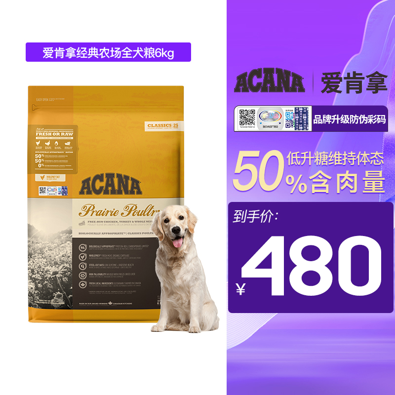 ACANA爱肯拿进口狗粮幼犬成犬金毛柯基拉布拉多通用全阶段经典全犬粮 农场全犬粮6kg(23.7.24)