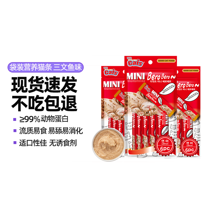 猫太郎猫条猫零食成幼猫增肥发腮营养条补水猫咪零食湿粮无诱食剂 三文鱼味10g*18支