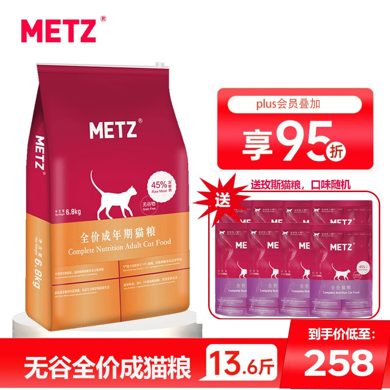 玫斯(metz)全价猫粮 无谷生鲜猫粮怀孕母猫成猫幼猫猫主粮营养食品猫奶糕 【无谷】全价成猫粮6.8kg