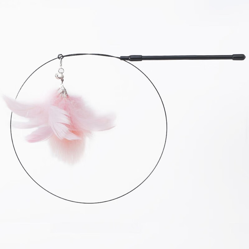 小囧 猫玩具逗猫棒长杆钢丝羽毛可替换头自嗨猫咪神器吸盘式长杆钓猫棍猫咪用品 手持粉色羽毛