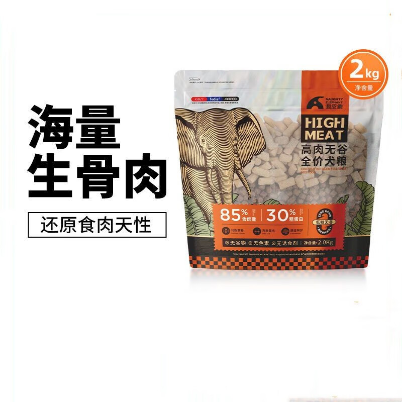 短云调皮象高肉30%蛋白无谷狗粮冻干生骨肉泰迪金毛哈士奇全价通用 2kg 全阶段 高肉无谷狗粮30%蛋白
