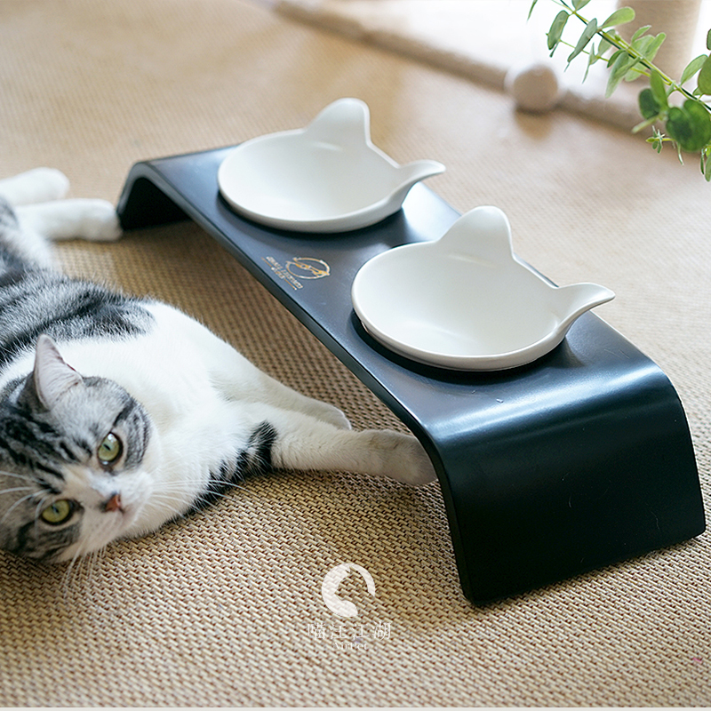 小野豹宠物猫碗狗碗碗架保护颈椎防打翻实木曲面双碗/三碗碗架