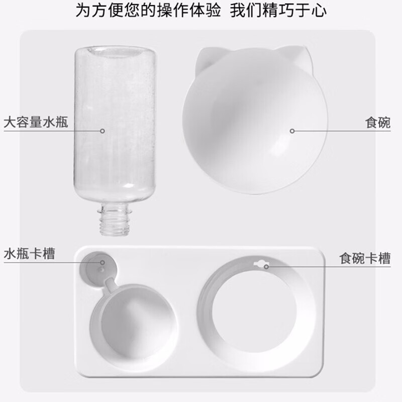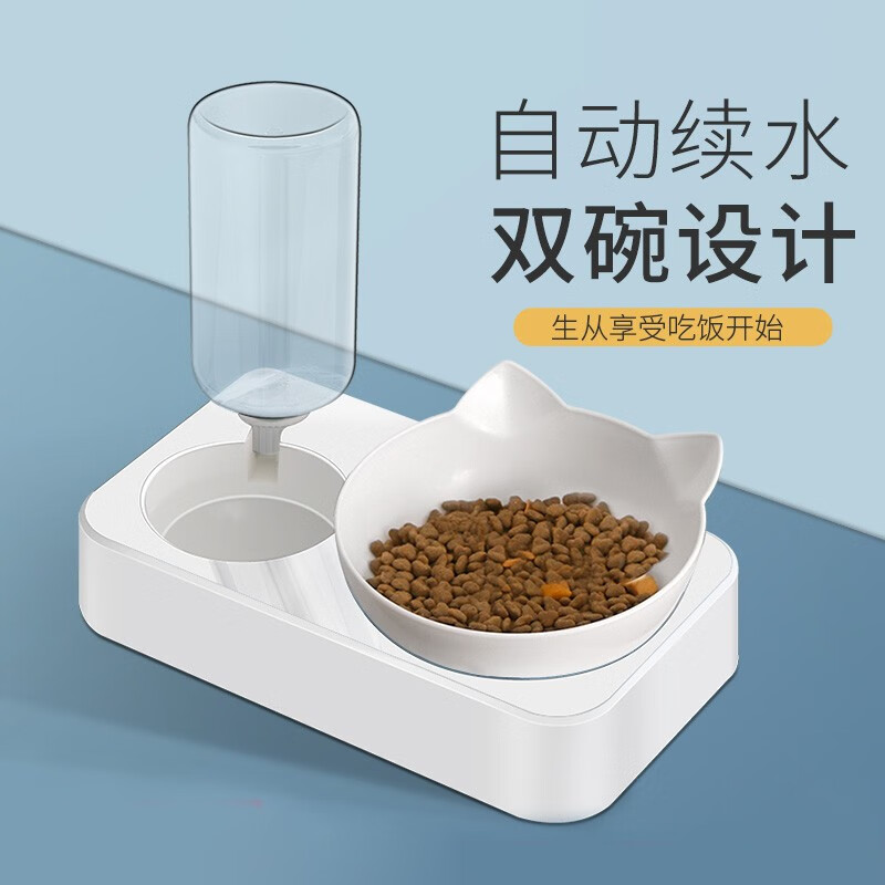 迪普尔 宠物狗碗狗盆猫碗猫盆猫咪狗狗自动饮水喝水用品泰迪狗食盆双碗饭盆 猫耳带瓶碗大号 *