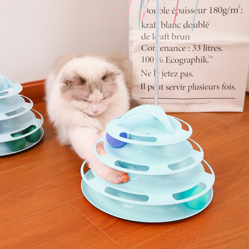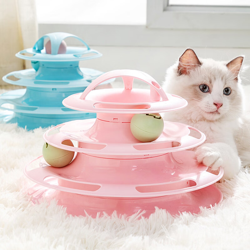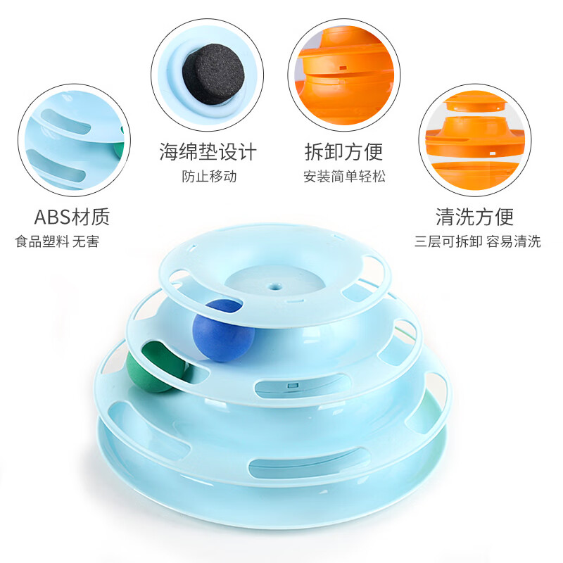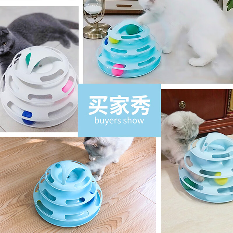 疯狂的小狗 猫玩具猫转盘玩具球宠物逗猫棒猫抓板玩具猫咪用品 三层猫转盘蓝色