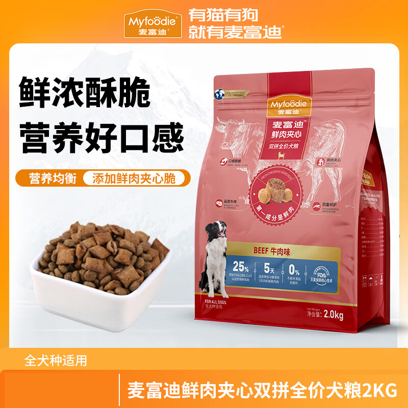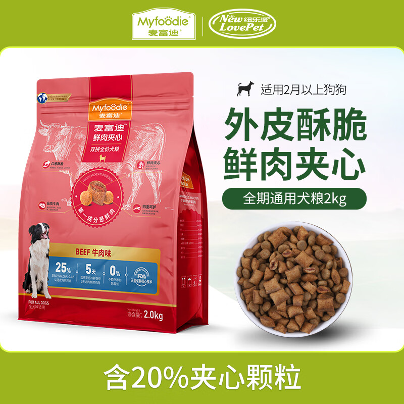 麦富迪狗粮 牛肉夹心酥双拼鲜肉粮全犬种通用犬粮 全期通用2kg(含20%牛肉夹心)