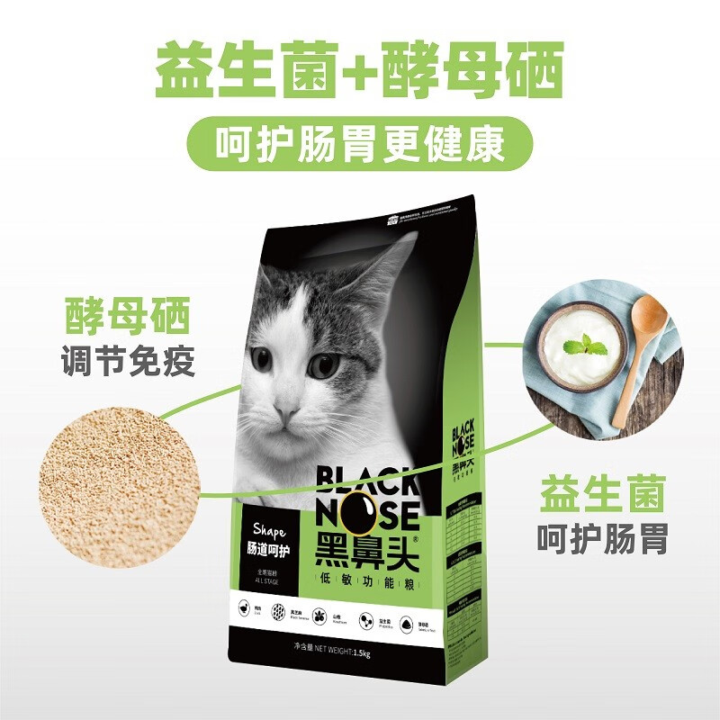 黑鼻头无谷猫粮奶糕冻干低敏成猫幼猫通用型全价猫粮肠道呵护1.5kg