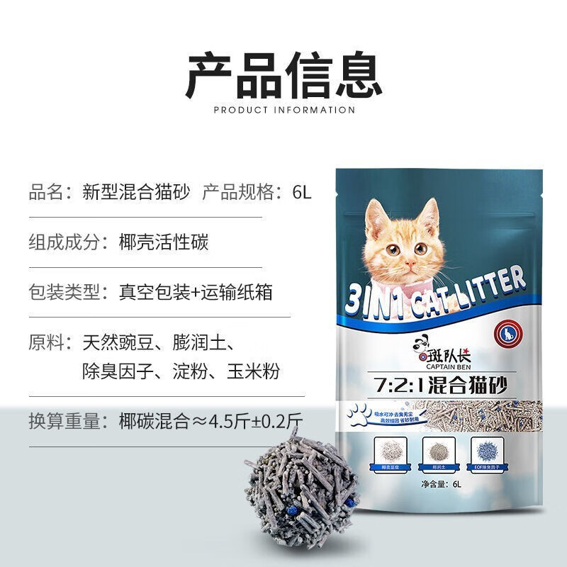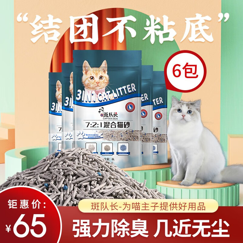 【 限时两包仅24.9】斑队长猫砂 结团除臭无尘豆腐猫砂混合6L / 2.25kg*2袋 猫咪用品 【超值囤货】浓郁奶香6袋装