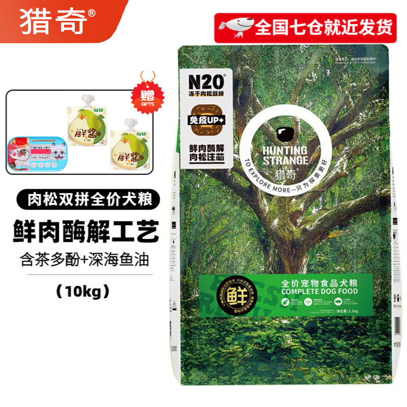 猎奇狗粮肉松双拼系列添加茶多酚美毛含深海鱼油全期通用犬粮 肉松双拼全价犬粮10kg