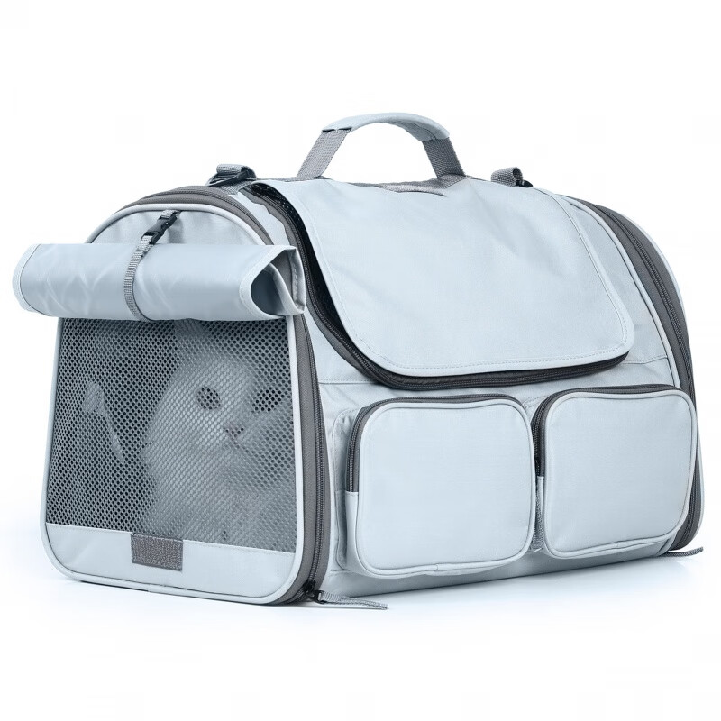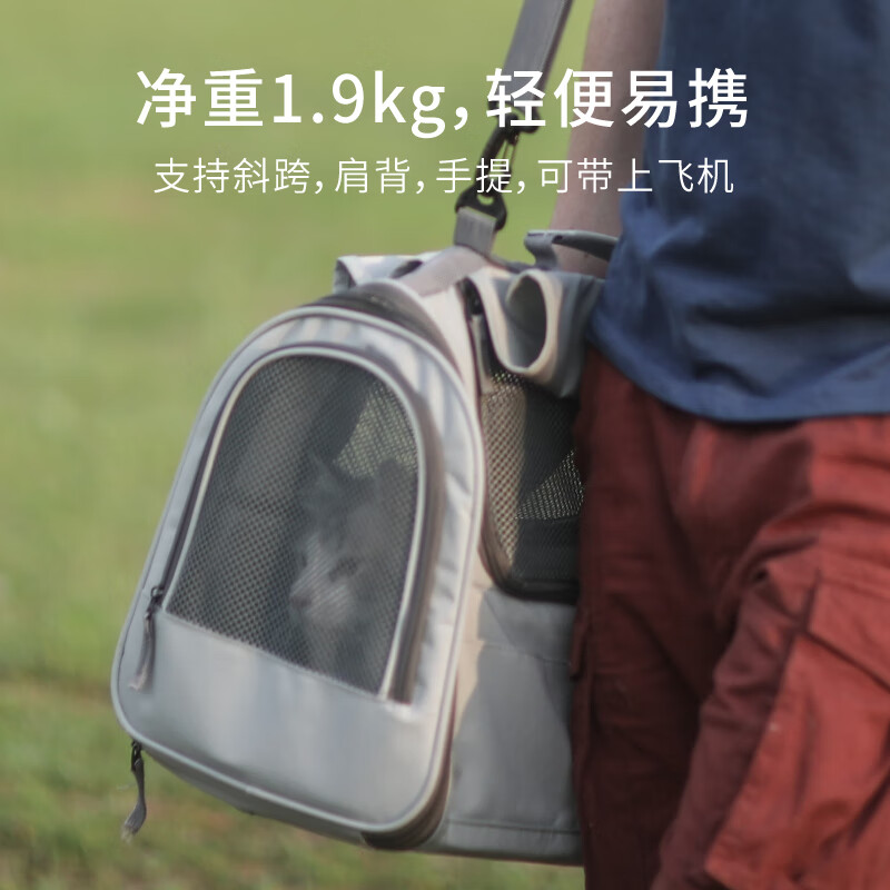 福丸猫包外出便携大空间宠物背包透气猫咪狗狗坐车长途可折叠应激 灰色猫咪出行单肩包 默认1