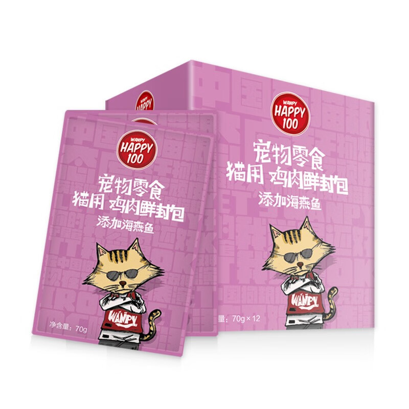 顽皮(Wanpy) 顽皮Happy100美妙鲜封包 猫用湿粮零食 HAP系列-鸡肉海燕鱼 70g HAP系列120包/活力营养系列120包