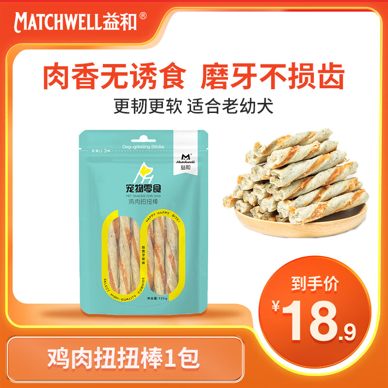 益和(MATCHWELL)磨牙棒狗狗零食中小型犬幼犬洁齿专用牛皮一米棒耐咬泰迪柯基通用 【鸡肉扭扭棒】6根老幼犬适用