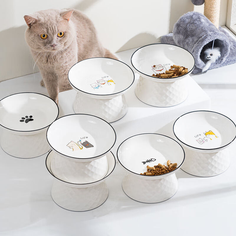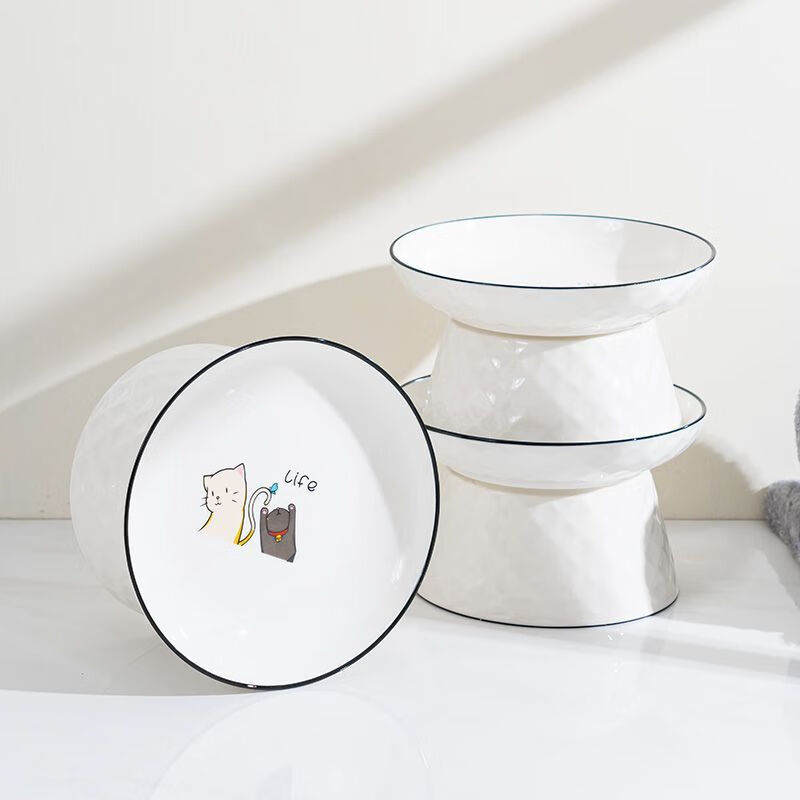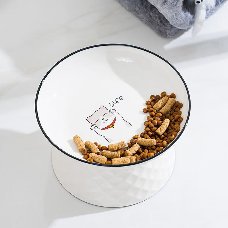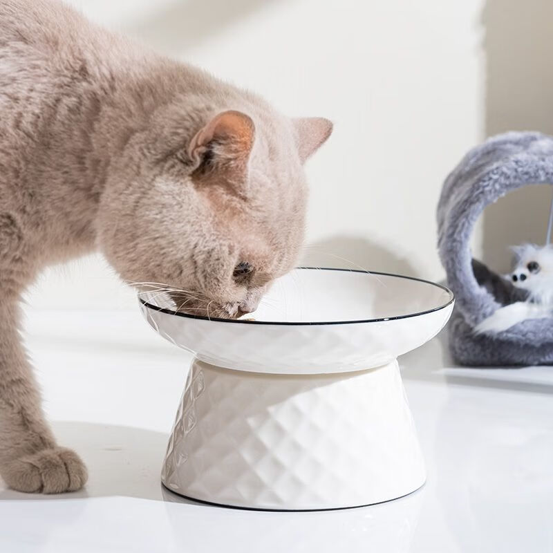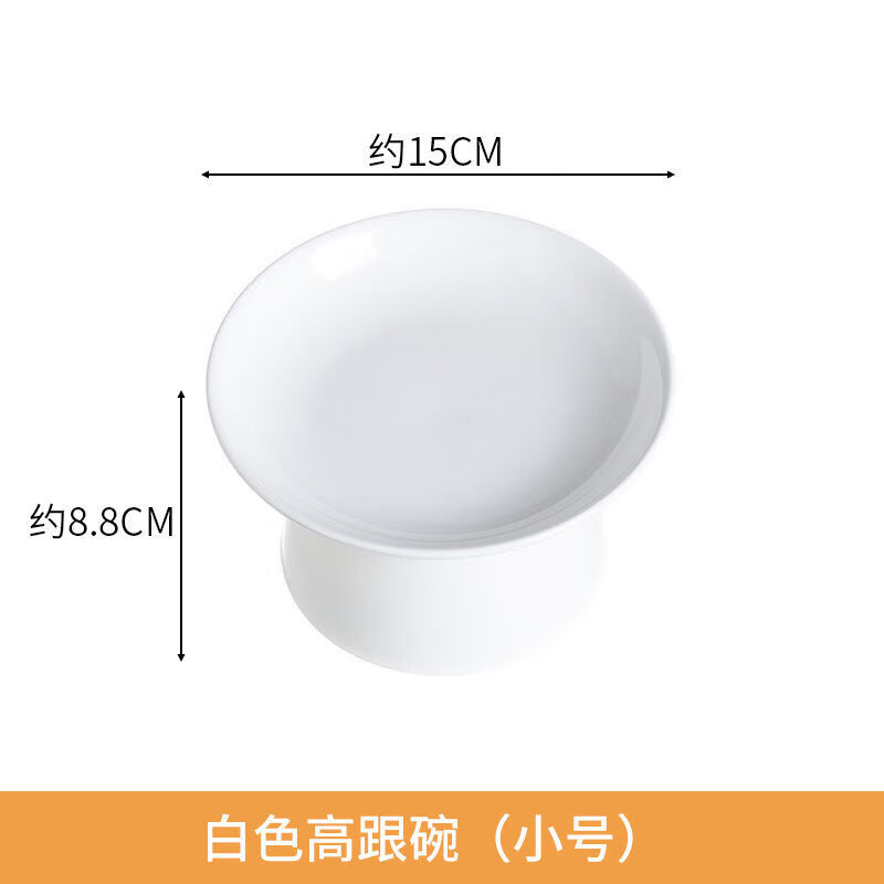 JHHUIYA猫碗陶瓷大口径猫食盆狗碗宠物碗护颈防打翻防黑下巴喝水宽口粮盆 白色高跟碗(15厘米)