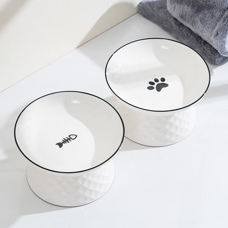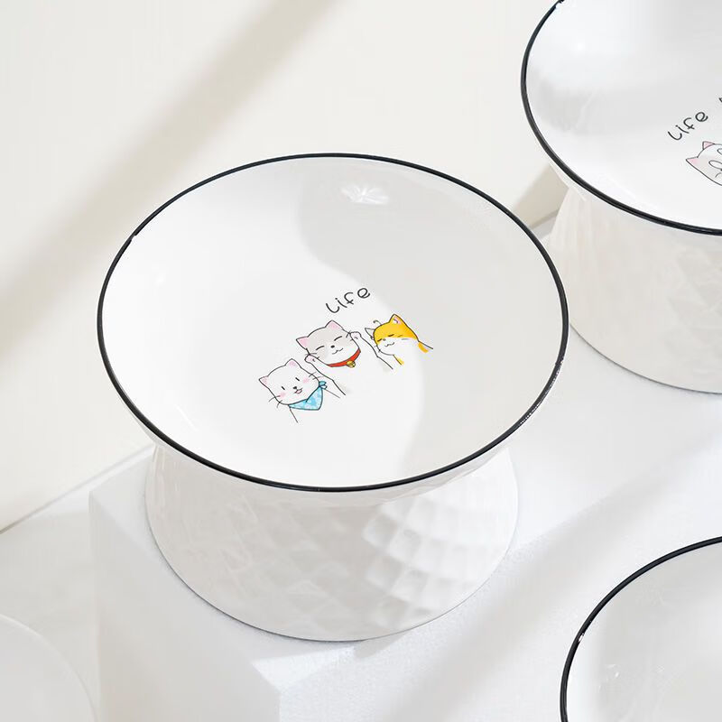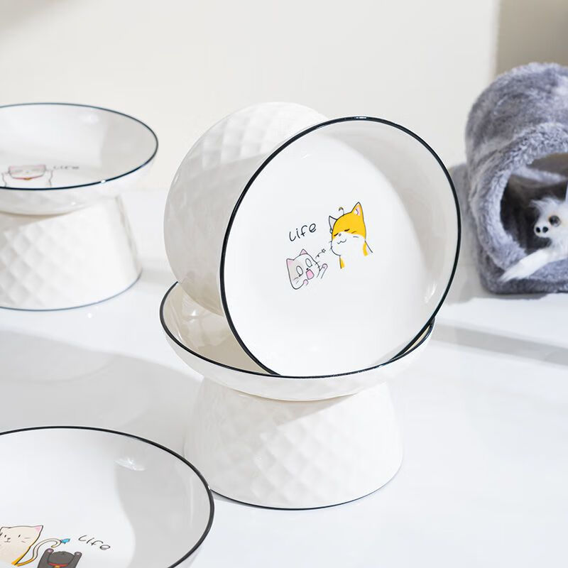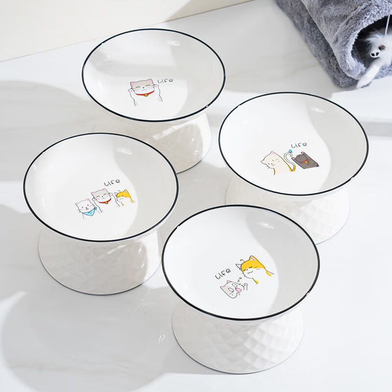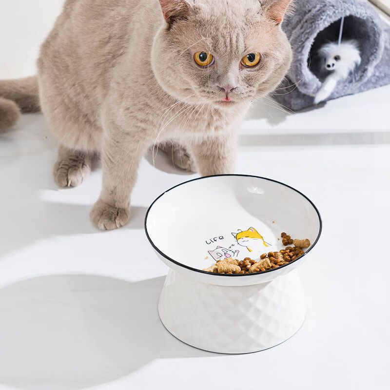 JHHUIYA猫碗陶瓷大口径猫食盆狗碗宠物碗护颈防打翻防黑下巴喝水宽口粮盆 白色高跟碗(15厘米)