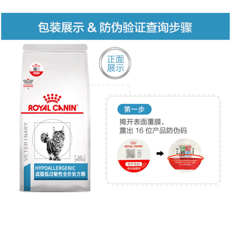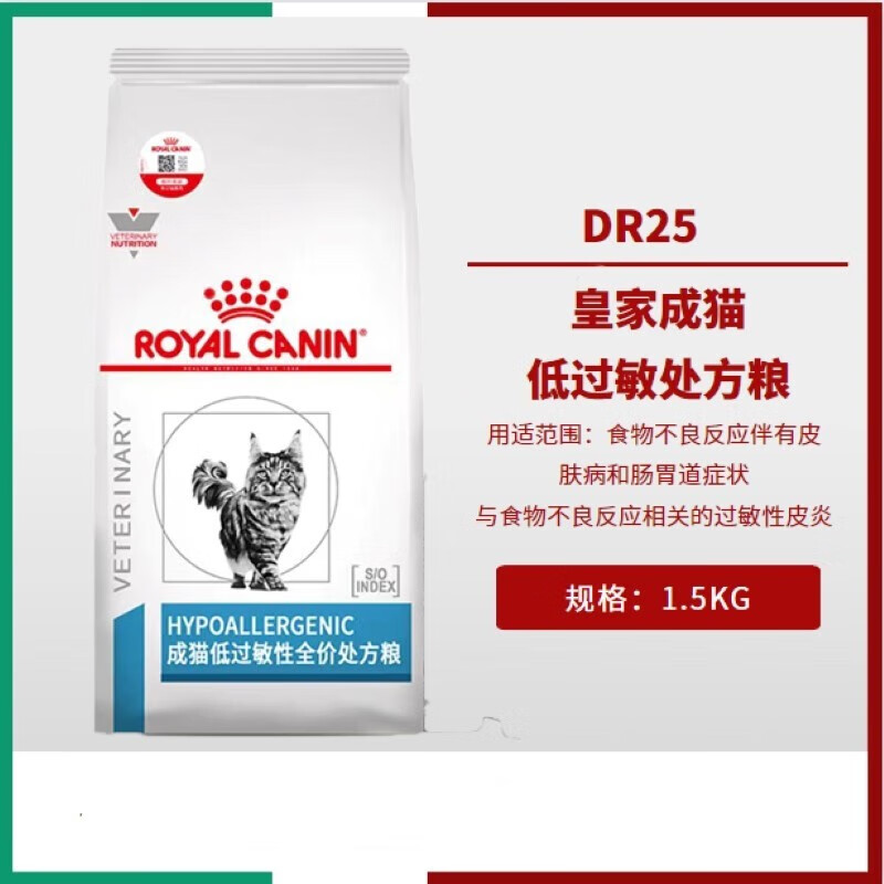 皇家猫粮低过敏全价处方粮DR25猫咪食物过敏皮肤肠胃敏感低敏猫粮湿粮 DR25成猫低过敏处方粮粮1.5KG 规格