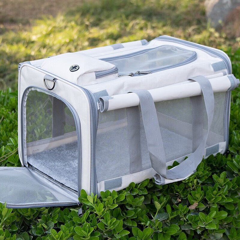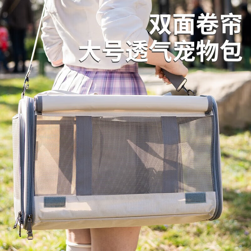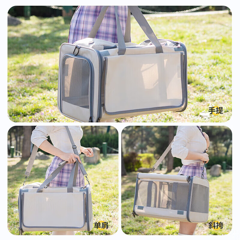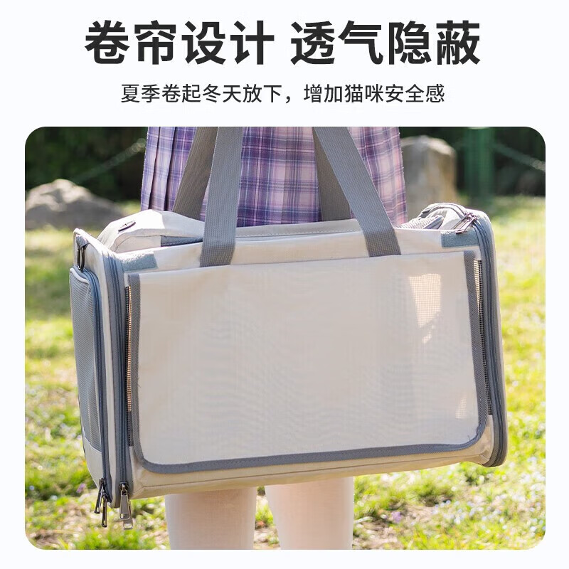 煜宠猫包外出便携式大号手提式宠物包大容量猫笼透气可折叠猫箱车载包 米白色
