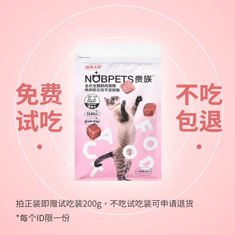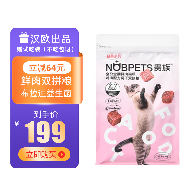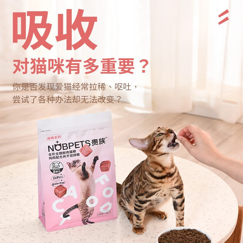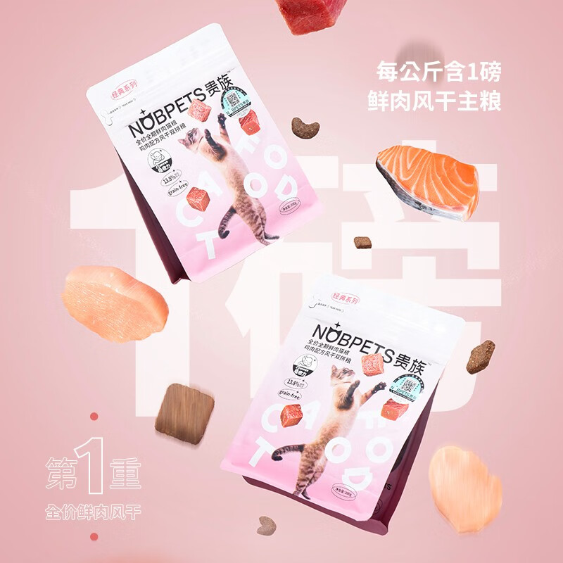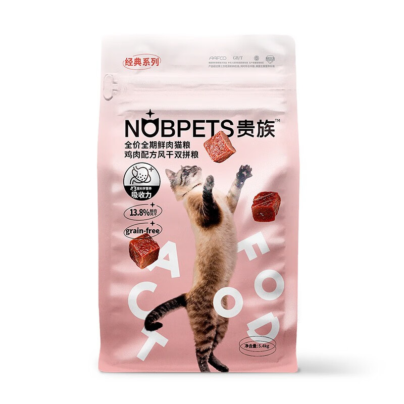 贵族NOBPETS 鲜肉猫粮 成猫冻干生骨肉 95双拼鲜肉粮 全价无谷 成猫/幼猫 奶糕全期猫粮 贵族经典全价全期风干双拼鸡肉猫粮5.4kg