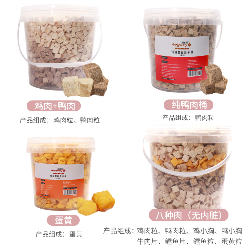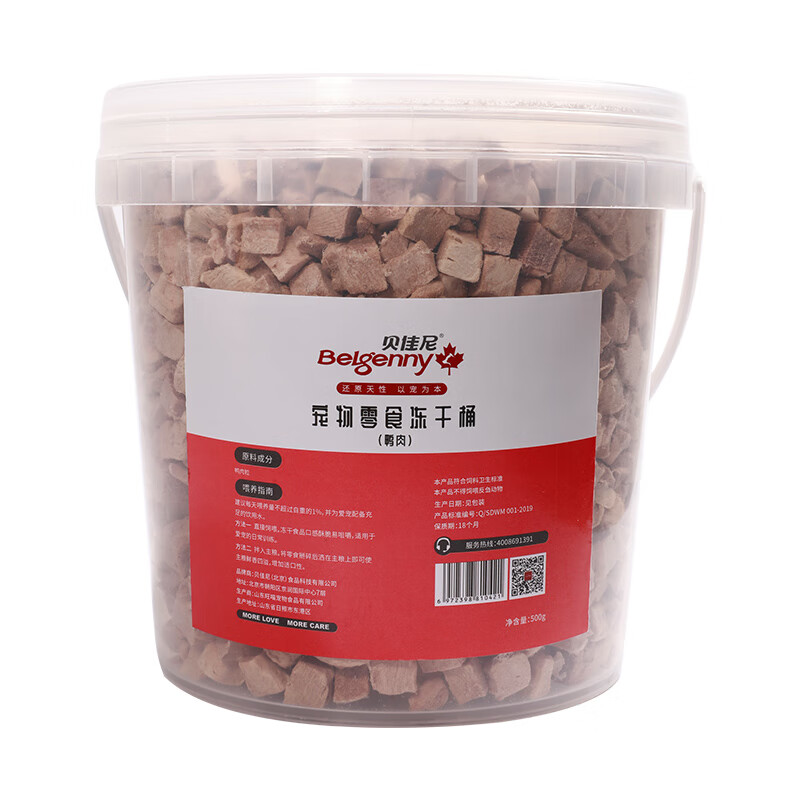 贝佳尼猫咪零食鸡肉冻干鸡肉宠物猫咪鸡胸肉多春鱼小鱼干狗狗训犬零食 鸭肉桶500g【降火减脂】