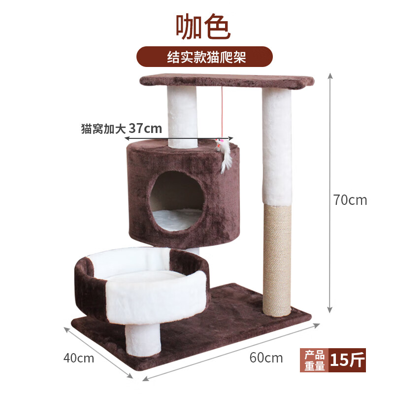 珊野 猫爬架子猫架猫爬架猫窝猫树一体麻绳猫抓板/柱猫咪用品四季通用 咖色结实款【适合15斤内】