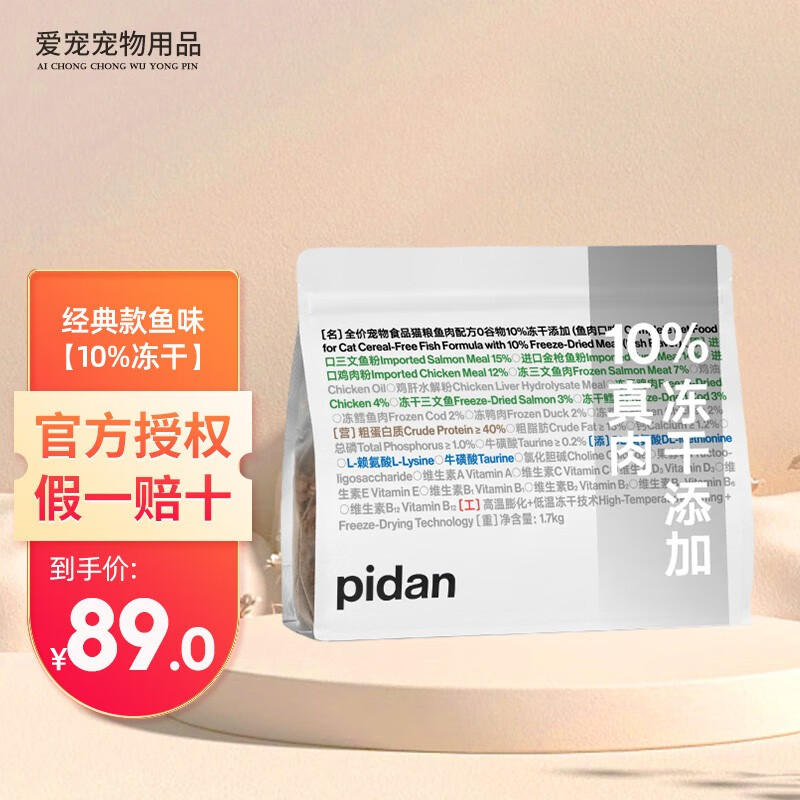 pidan皮蛋猫粮全价低温烘焙猫粮鸡鸭鱼肉全期成幼猫主粮1.7kg 鱼肉味【10%冻干】1包