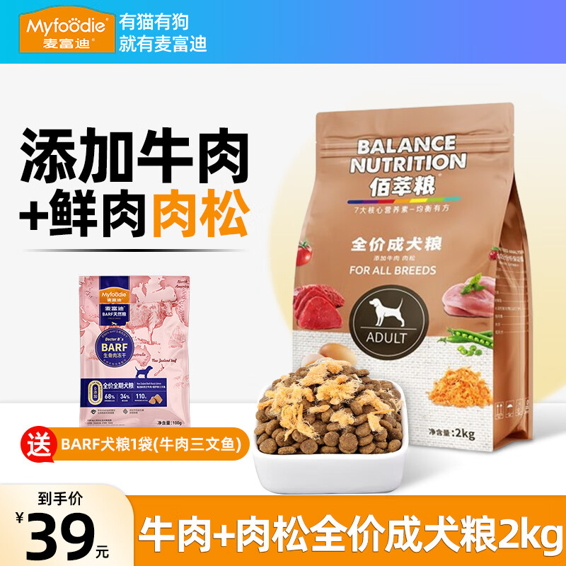 麦富迪狗粮佰萃牛肉成犬粮中大小型犬泰迪金毛犬粮通用型蛋黄肉松螺旋藻 牛肉 肉松2kg