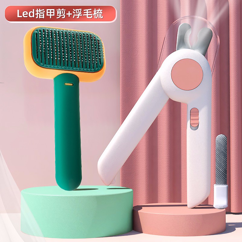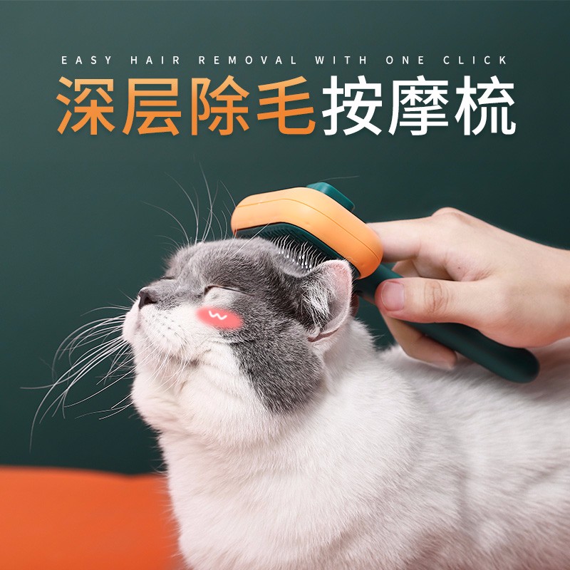 hoopet猫梳子猫咪去浮毛梳毛刷子宠物狗狗猫毛清理器幼猫短长毛按摩针梳脱毛开结除毛撸猫神器刮毛用品 橙绿梳子 led指甲剪(可照血线)
