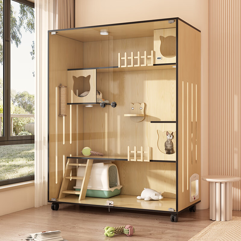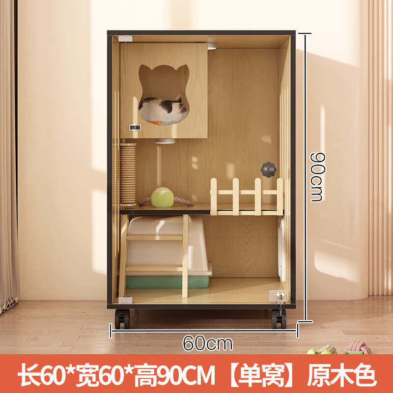 小米城堡猫别墅猫笼子家用全景猫柜木质猫屋猫舍室内猫窝豪华猫房子大空间 90*60*60【原木色】 自行安装 配货上门