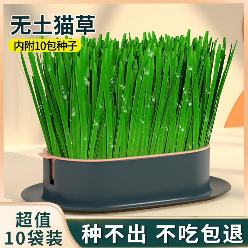 小古世猫草盆栽水培化毛球草种子粒非已种好猫薄荷懒人幼猫零食猫咪用品 猫草套装蓝粉色【10袋种子】