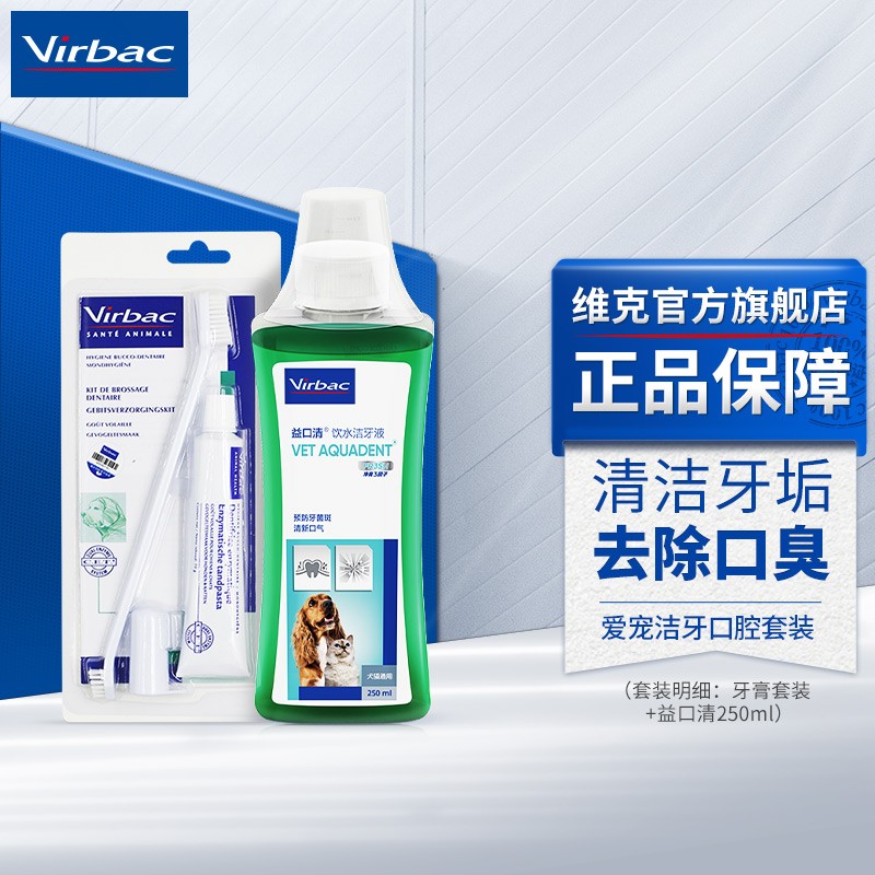 法国virbac维克爱宠口腔护理套装 狗狗猫咪洁齿片牙膏除口臭洁牙磨牙棒宠物口腔清洁牙结石牙菌斑 复合酶牙膏套装 益口清250ml
