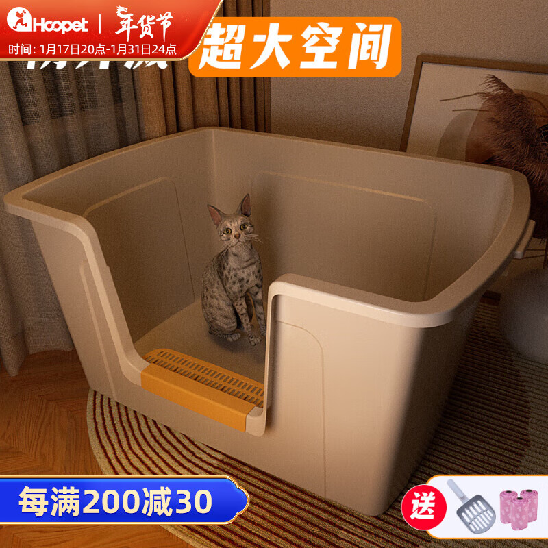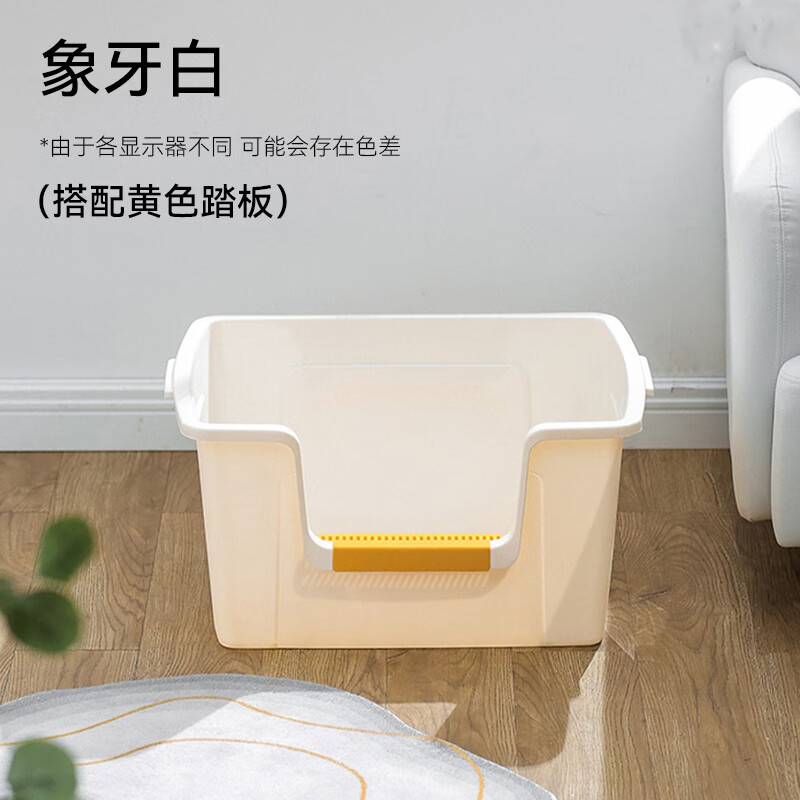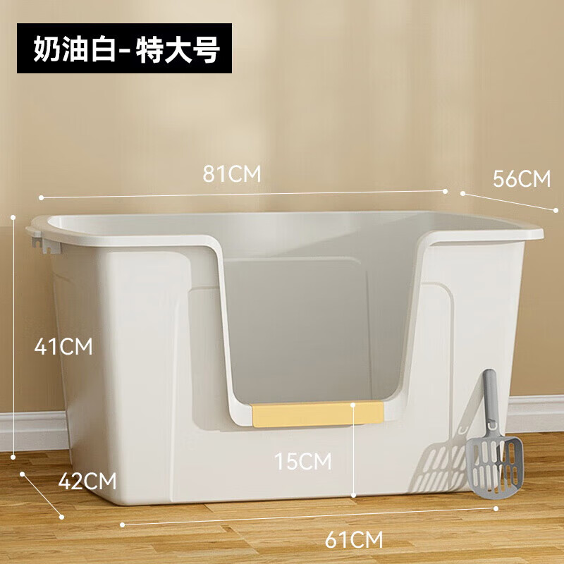 华元宠具(hoopet)猫砂盆特大号开放式巨型猫沙盆防外溅加大加深缅因猫咪超大猫厕所 奶油白【巨大号81*56*41cm】