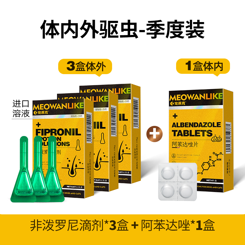 宠莱克驱虫药猫体内外一体猫咪狗狗幼犬体外除跳蚤蜱虫宠物专用驱虫滴剂 季度装