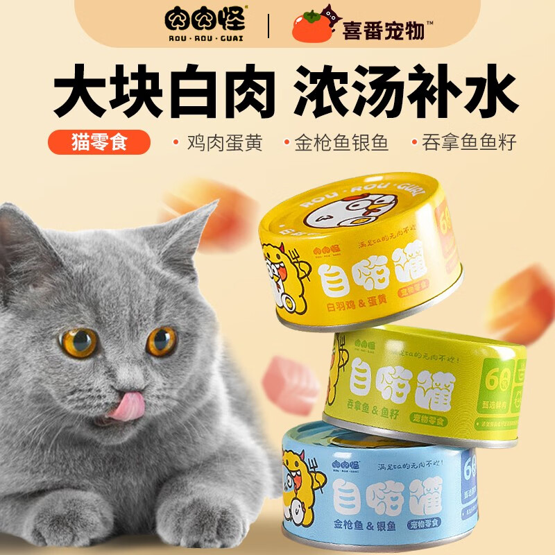 肉肉怪猫咪自嗨罐猫罐头猫零食成猫幼猫湿粮猫咪补水零食罐汤鸡肉金枪鱼 混合/随机口味 80g*12罐
