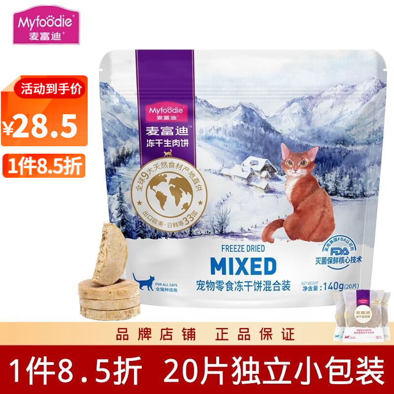 麦富迪零食猫零食冻干生肉饼牛肉鸡肉营养增肥猫咪零食猫冻干冻干零食 冻干生肉饼混合140g