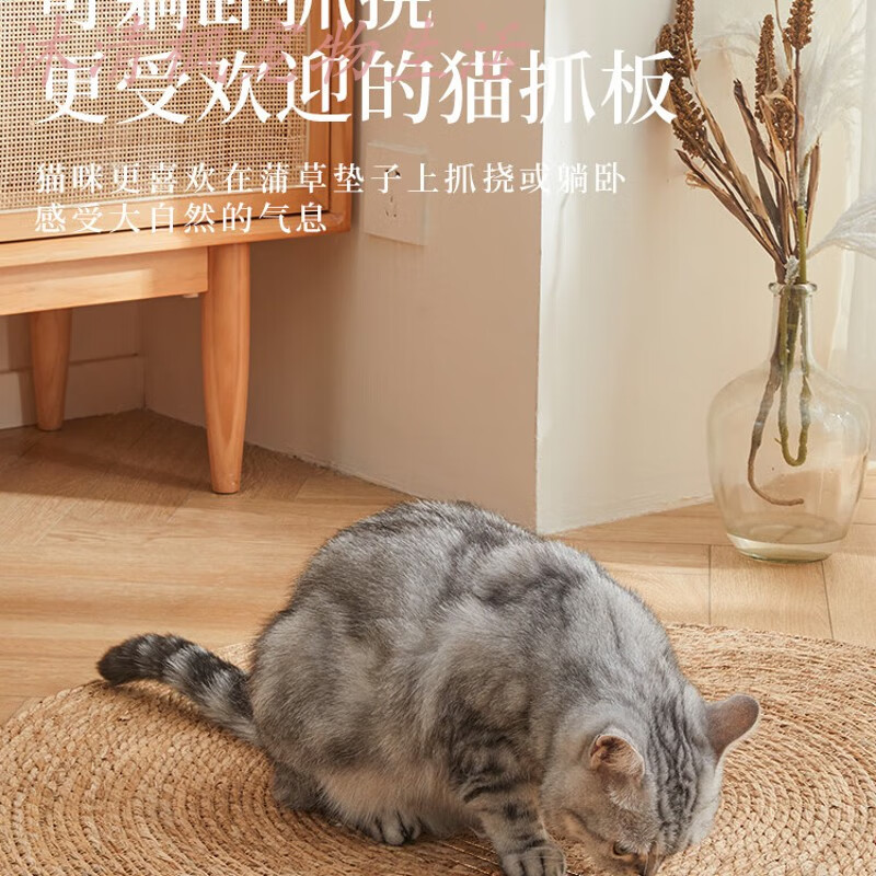 妙普乐蒲草猫抓板大号磨爪猫玩具耐磨耐抓不掉屑抓盆一体猫窝藤编猫睡垫 40cm[