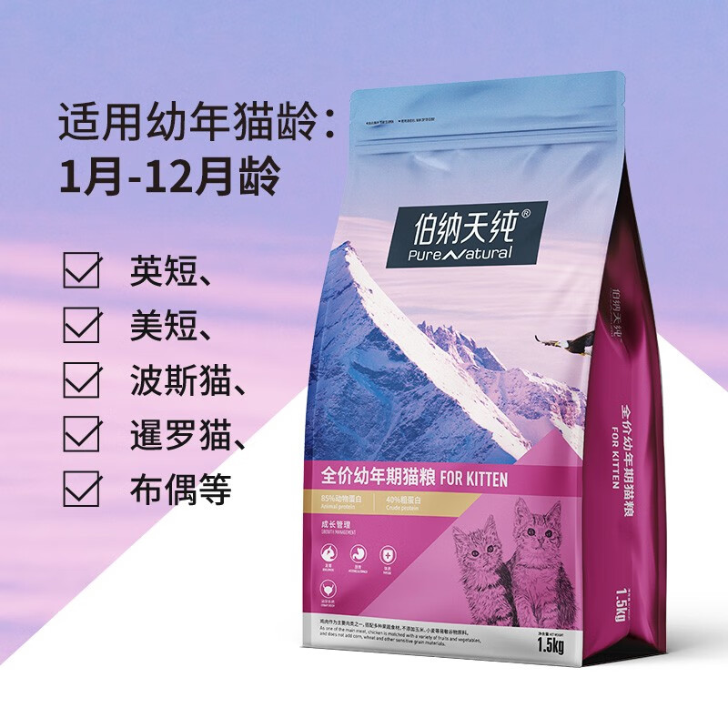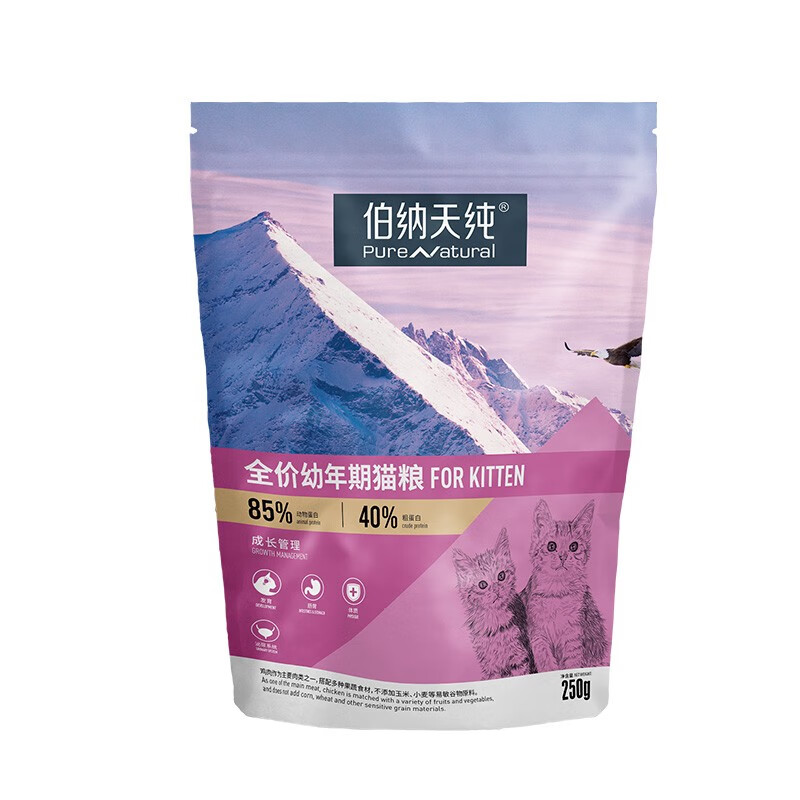伯纳天纯宠物猫幼猫猫粮3月-12月龄营养发腮小猫离乳期奶糕粮幼猫经典系列 幼年期猫粮250g