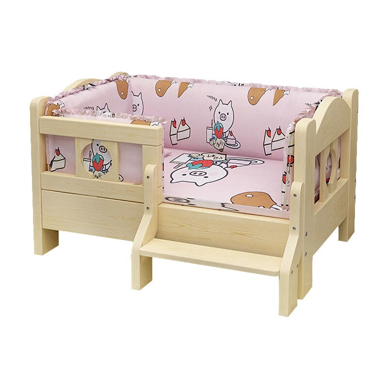 贝尼宠 狗床实木宠物床狗窝猫床泰迪床金毛床比熊床二哈床萨摩耶狗床 实木裸床 床品 中号80x60x40cm30斤内