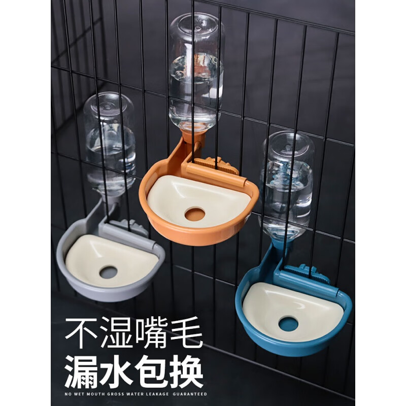 OIMG狗狗喝水器不湿嘴挂式饮水器宠物水壶喂水猫咪自动饮水机悬挂 挂笼喂食器800ml-典雅灰 (可调
