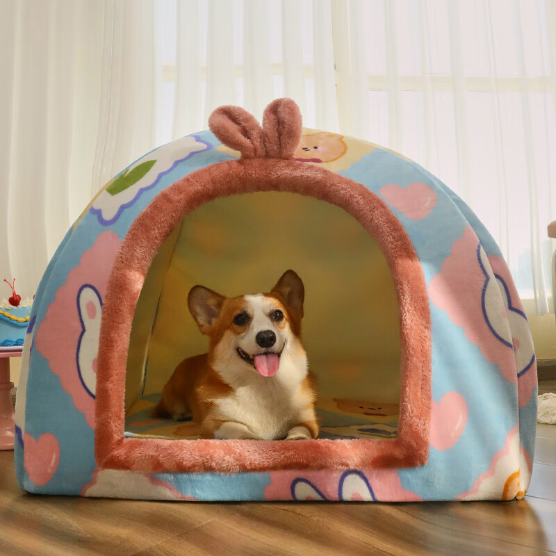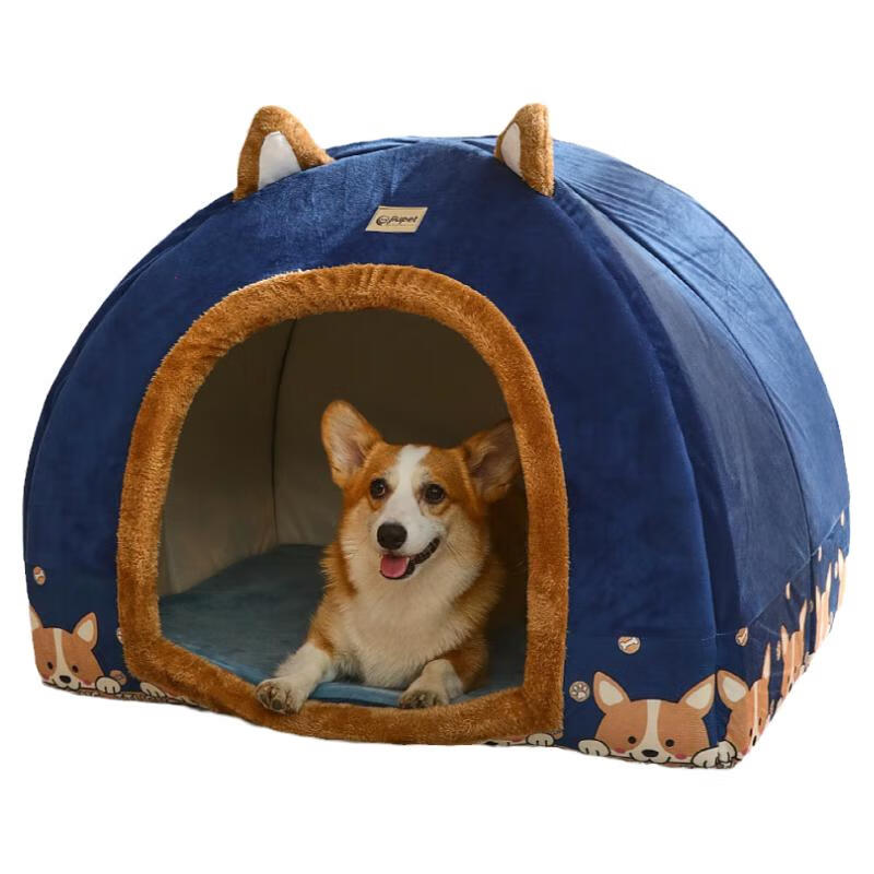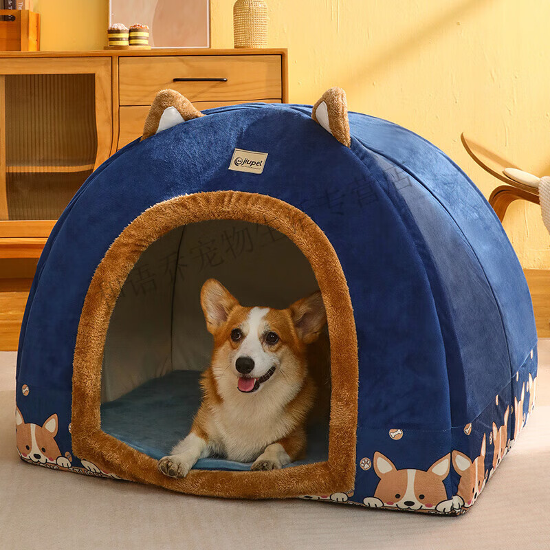 狗窝冬天保暖房子型狗屋中小型犬柯基泰迪封闭式网红猫窝四季通用 藏青柯基【冬季新款】 M-建议10斤内宠物【建议选大码更宽敞舒适】