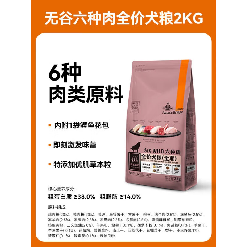 比瑞吉六种肉狗粮通用型幼犬成犬小型犬中型金毛泰迪冻干犬粮2kg 【六种肉类,添加草本冻干】全价 2kg