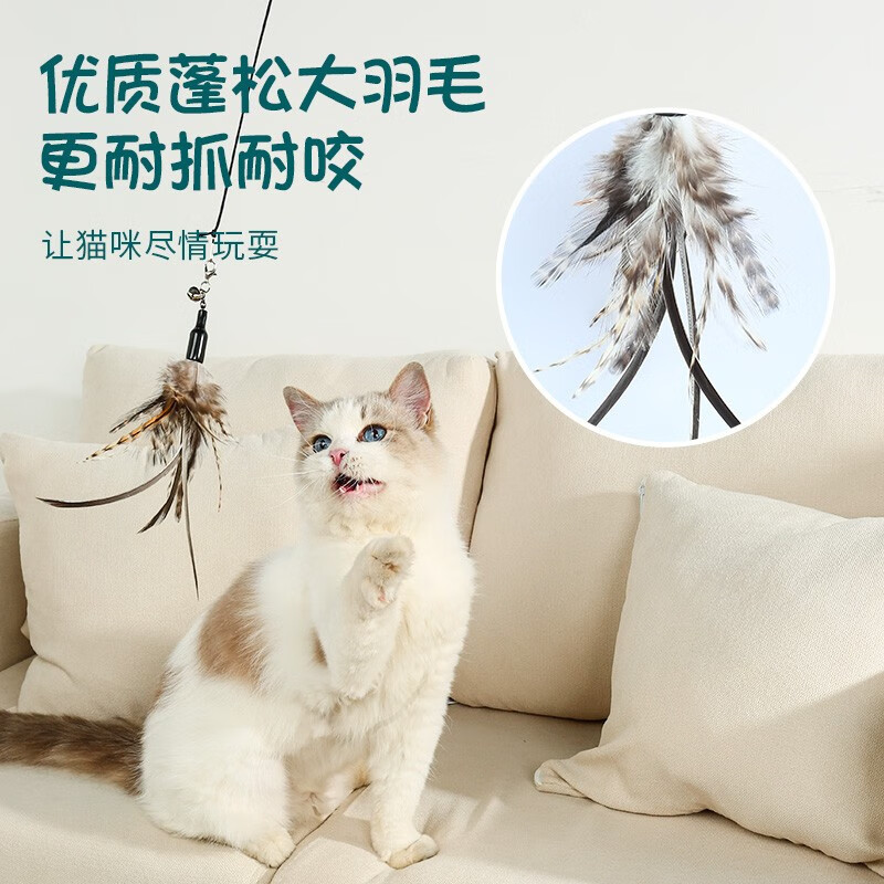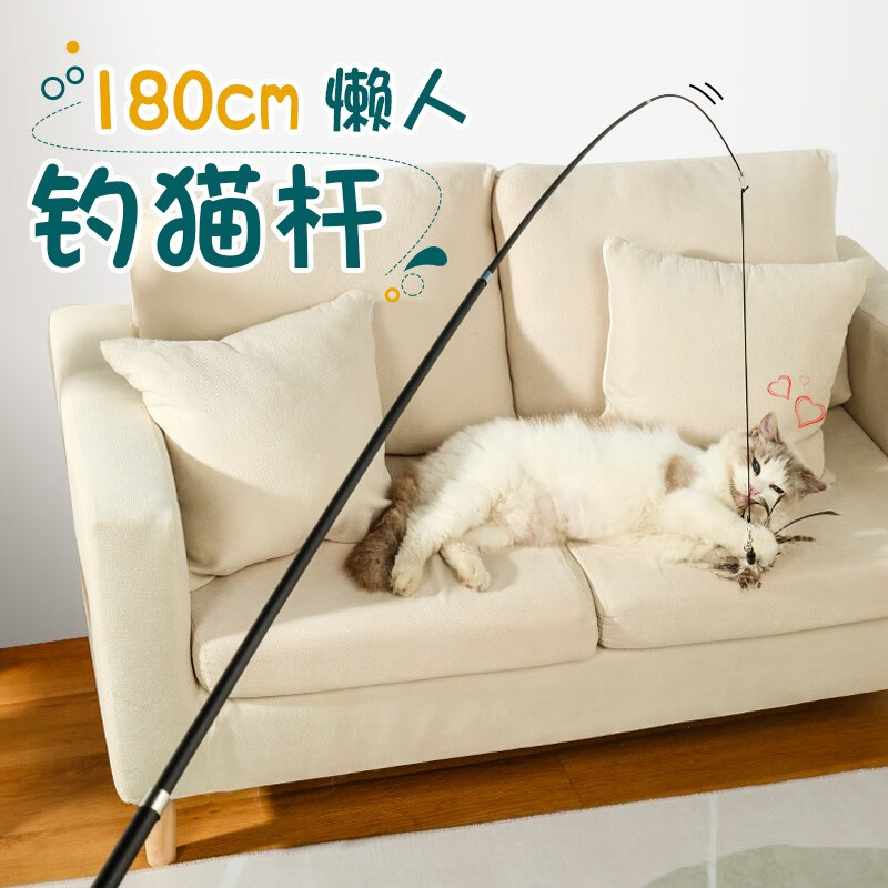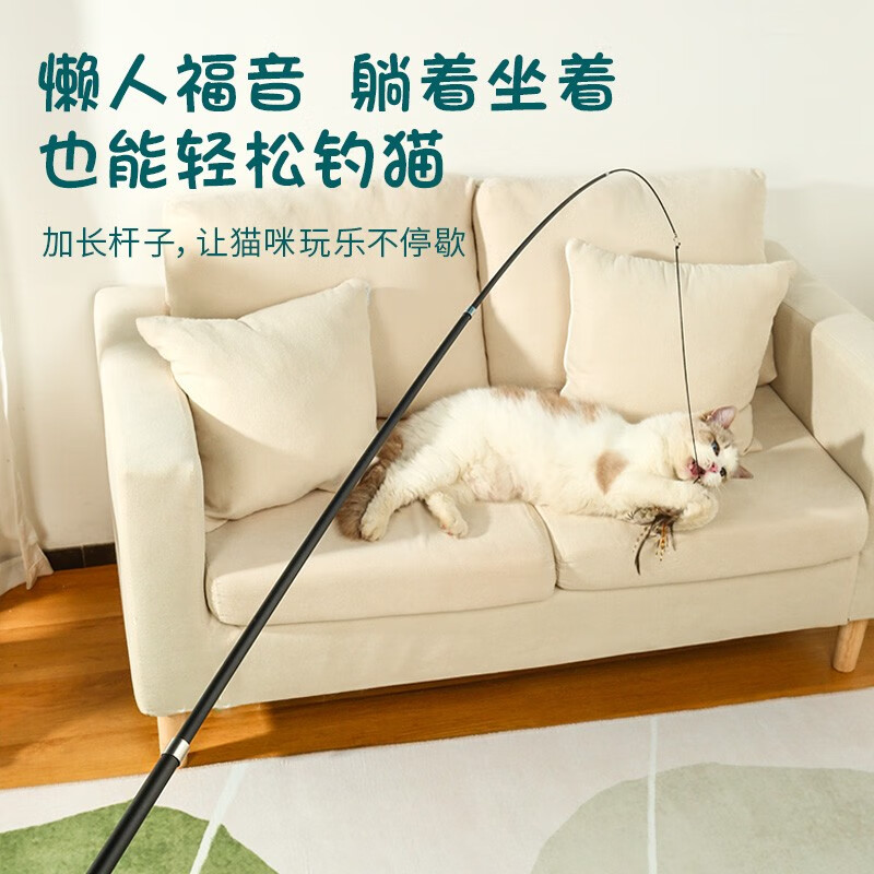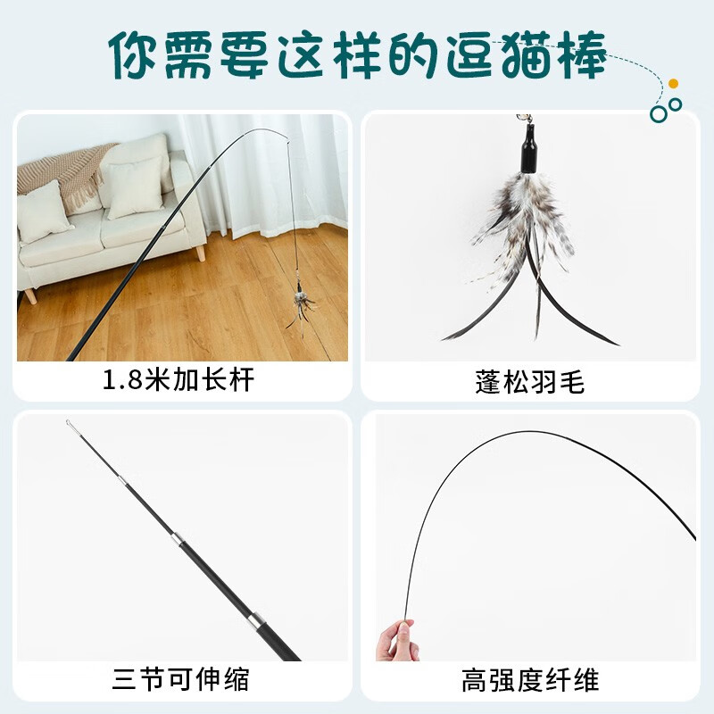 怡亲 猫玩具逗猫棒 猫咪玩具长杆钓鱼竿 宠物用品套装逗猫神器 1.8米长杆【蓬松鹅毛 三节伸缩】