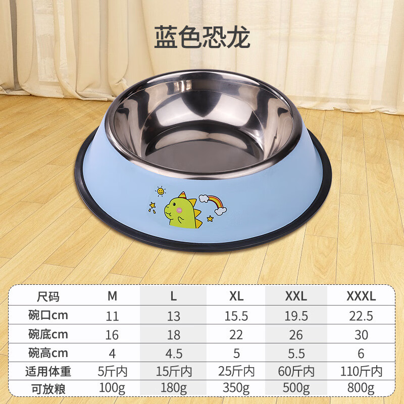 柒哦狗狗不锈钢印花单碗狗碗防打翻中大型犬大容量食盆猫碗宠物用品 XXXL适合110斤以内大型犬 黄色小熊