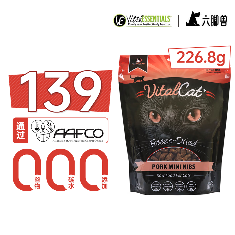 VITALESSENTIALS美国进口 VE冻干肉粒 主食冻干 猪肉配方 226.8g/8盎司