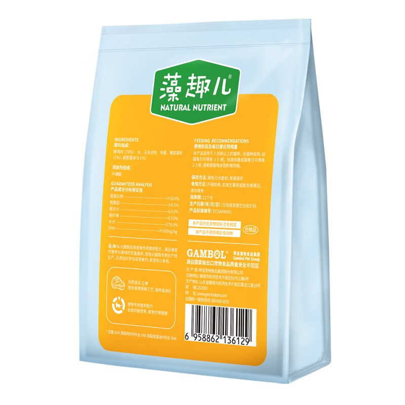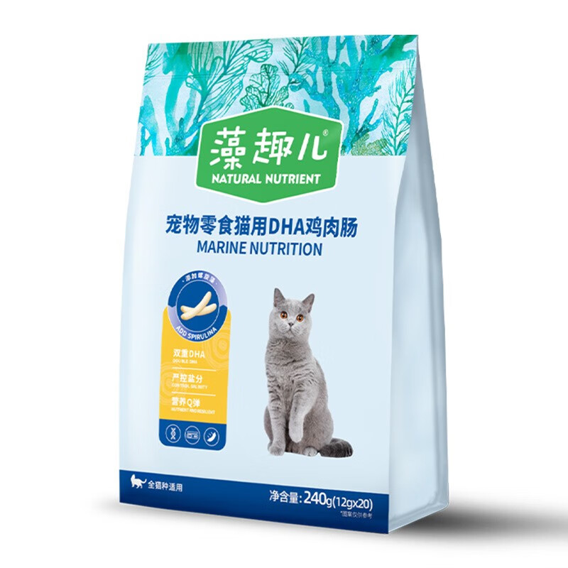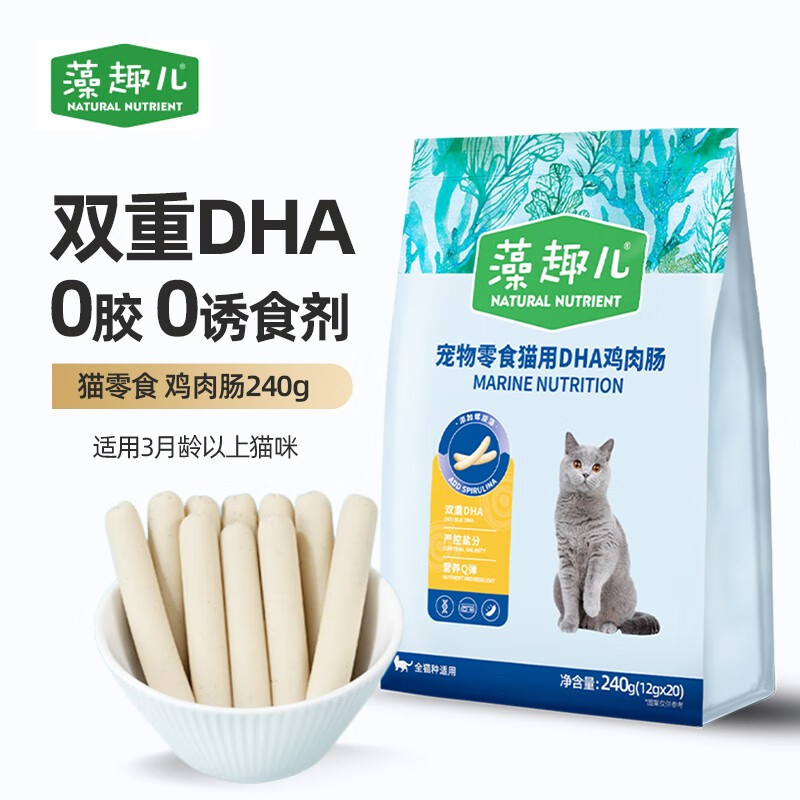 藻趣儿 宠物猫零食 火腿肠互动奖励含DHA高营养护心脏强活力 鸡肉肠12g*20支